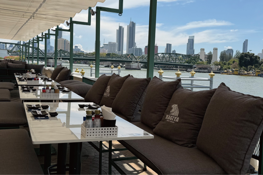 ■มีเมนูอาหารกลางวัน (Lunch menu available) ■Pมีที่จอดรถ ■ทั้งหมด 84 ที่นั่ง ■มีห้องส่วนตัว 6 ห้อง ■ทุกที่นั่งเป็นเขตปลอดบุหรี่ (มีพื้นที่สูบบุหรี่ภายนอกร้าน) ■อยู่ติดกับท่าเรือเฟอร์รี่ ■มีที่นั่งริมแม่น้ำแบบเปิดโล่งแต่มีหลังคาให้ด้วย ■สถานีใกล้ที่สุดคือ MRT สนามไชย |